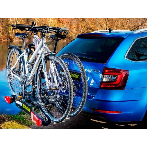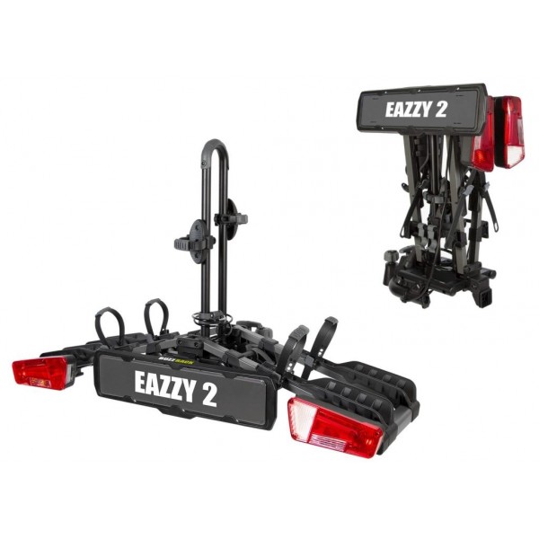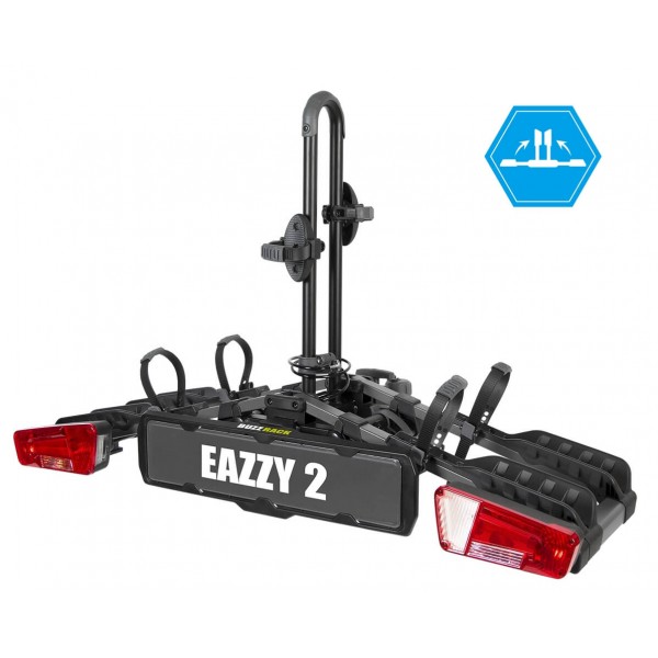 A Buzz Eazzy 2 vonóhorgos kerékpártartó, erős, könnyen kezelhető 2es kerékpárszállító. Az állítható rögzítőknek köszönhetően, szinte bármilyen kerékpár, kissebb gyermek- és női kerékpár is szállítható rajta. A rögzítő heveder, maximum 75 mm átmérőjű kerékpárvázat tud átfogni. Az Eazzy2 kerékpárszállítóval öröm lesz az utazás, mert könnyű használni, összecsukni, praktikus kettes kerékpárszállító vonóhorogra. Egyenként maximum 20kg súlyú kerékpárokat tudunk vele szállítani. A Buzz Rack Eazzy kerékpártartó szerkezet minősége, mind a hegesztést, festést, kivitelezést, összeillesztést tekintve példaértékű.