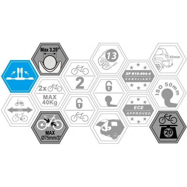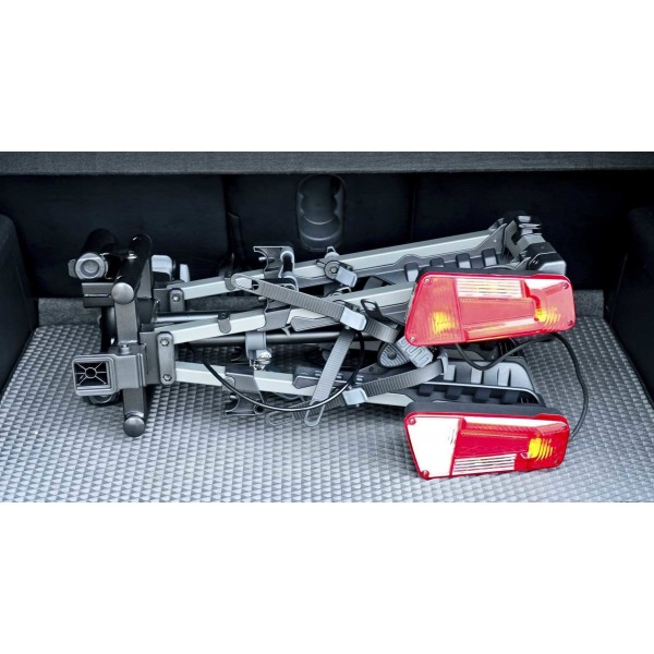 - Gyorsan fel- és leszerelhető, összecsukható kerékpártartó vonóhorogra.