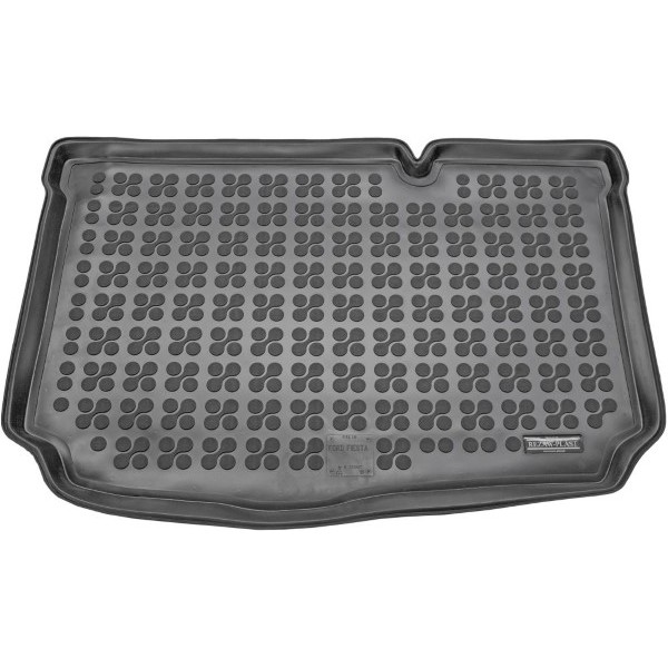 Méretpontos gumi csomagtartó borítás. Gyári minőségű, kopásálló, szagtalan gumiból készült peremes gumi csomagtartó tálca Ford Fiesta MK7 2017-től gyártott autókhoz.