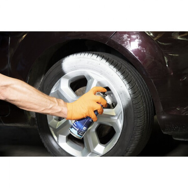 Berner gumiápoló hab spray gumiabroncsok egy munkamenetben történő tisztítása és ápolása.