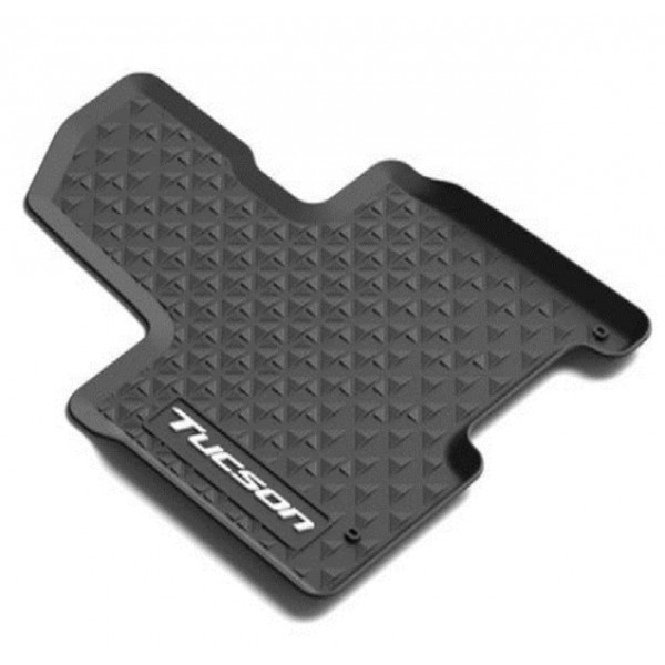 Hyundai Tucson gyári gumiszőnyeg, méretpontos, tökéletesen illeszkedő, a vezető oldalon a gyári pontokra a padlóhoz rögzíthető, Tucson logóval ellátott gumiszőnyeg. A Hyundai minden időjárás esetén használható gumiszőnyegei ideális védelmet nyújtanak a jármű lábtere számára.