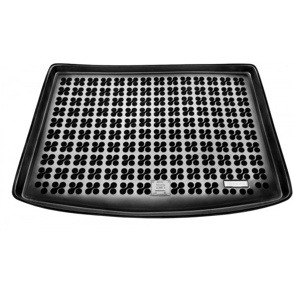 Méretpontos gumi csomagtartó borítás. Gyári minőségű, kopásálló, szagtalan gumiból készült peremes gumi csomagtartó tálca Toyota Auris II Hybrid 2012-től 2018-ig gyártott, nincs áthelyezhető csomagtérpadló, Comfort csomag nélkül autókhoz.