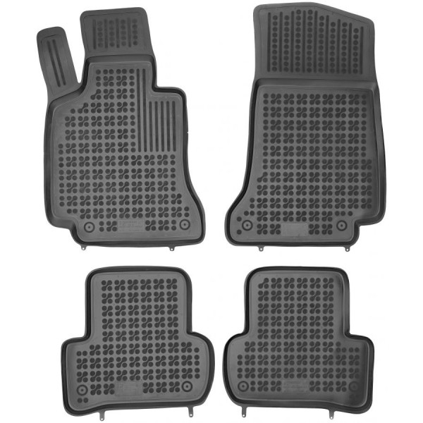 Méretpontos gumiszőnyeg. Gyári minőségű, kopásálló, szagtalan gumiból készült peremes gumiszőnyeg Mercedes C-Class 2014-től 2020-ig gyártott autókhoz.