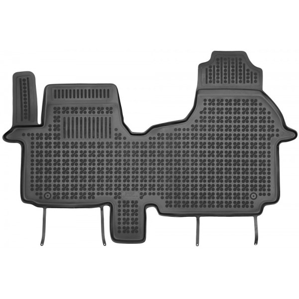 Méretpontos gumiszőnyeg. Gyári minőségű, kopásálló, szagtalan gumiból készült peremes gumiszőnyeg Opel Vivaro B elöl 3 üléses 2014-től 2019-ig gyártott autókhoz.