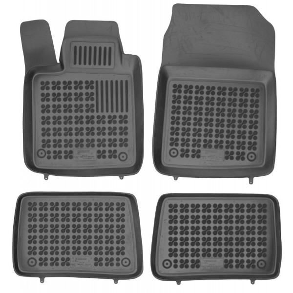 Méretpontos gumiszőnyeg. Gyári minőségű, kopásálló, szagtalan gumiból készült peremes gumiszőnyeg Renault Twingo II 2008-tól 2014-ig gyártott autókhoz.