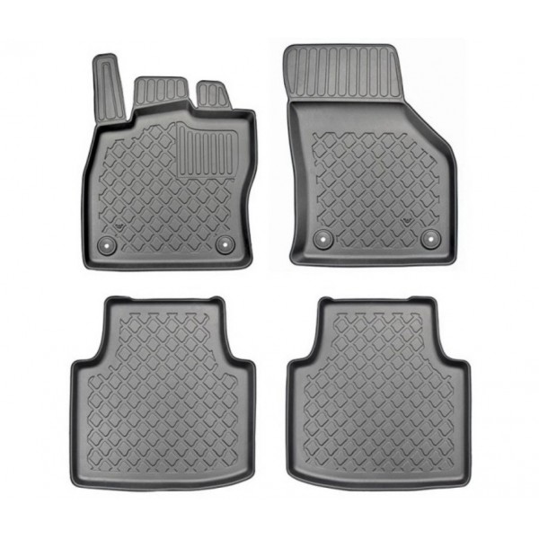 Méretpontos szőnyeg. Kiváló minőségű, kopásálló, szagtalan peremes szőnyeg műanyagból Skoda Superb 2015-2023-ig gyártott autókhoz.