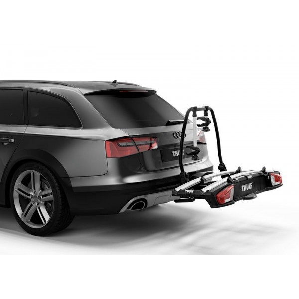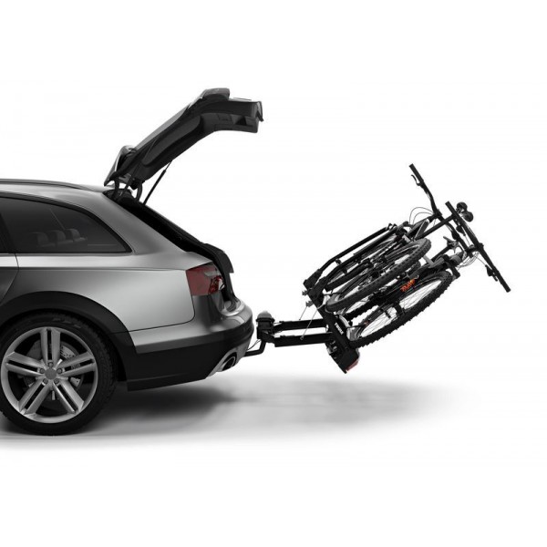 - A Thule VeloSpace kerékpártartók világítással és rendszámtáblatartóval vannak felszerelve, valamint összehajtható a kerékpártartó szerkezet a helytakarékos tárolás érdekében.